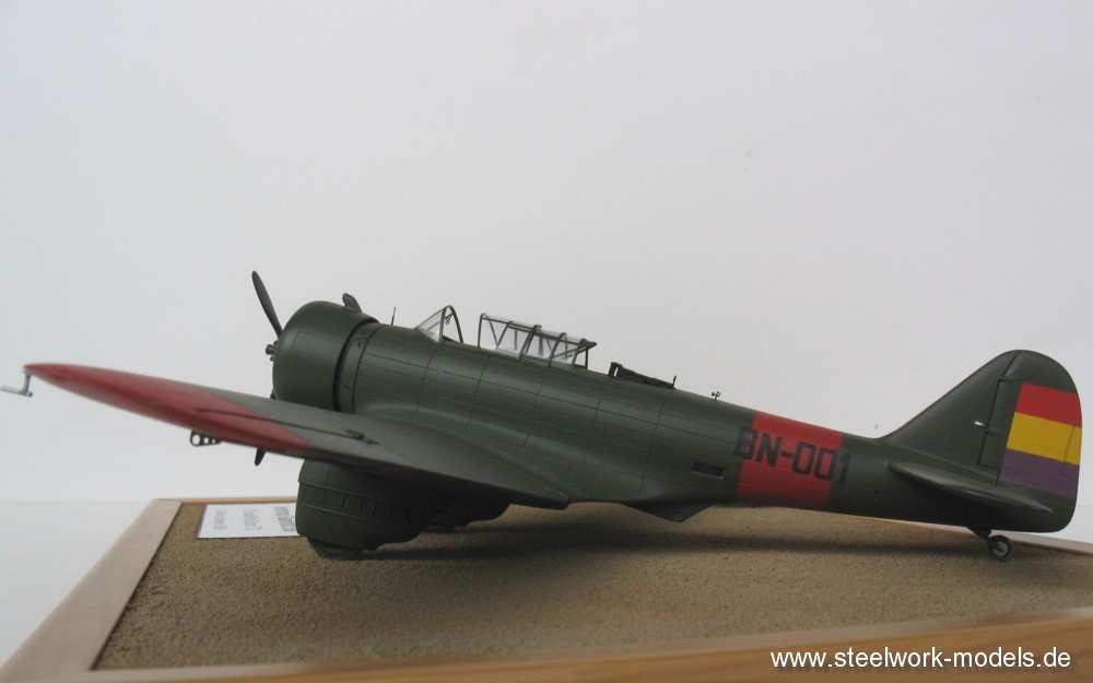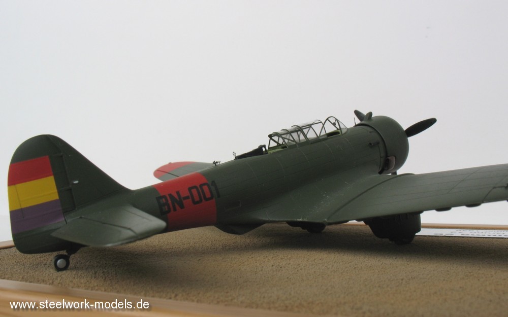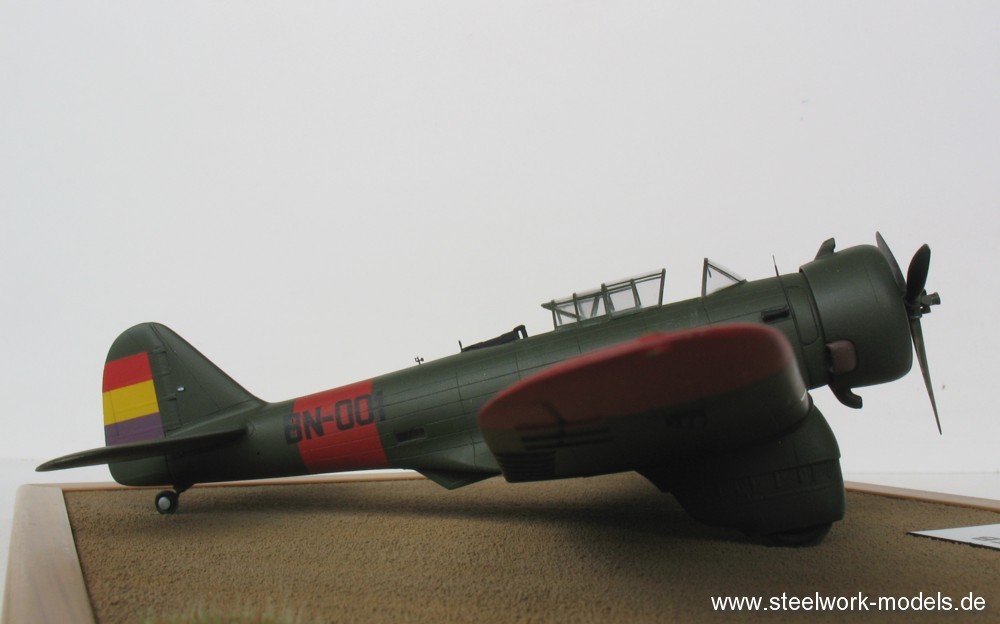 Das Seitenleitwerk ist runder gestaltet, ähnlich wie bei allen nachfolgenden Versionen. Am Höhenleitwerk wurde sehr viel verändert. Es ist höher angesetzt und erhielt neue, größere Flächen. Genauso hab ich das auch umgesetzt. Das Höhenleitwerk habe ich von der A-17 übernommen.