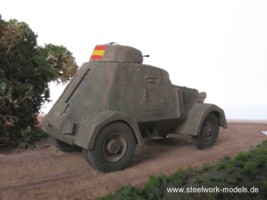 Mein Modell stellt das Fahrzeug mit der Nummer 4 auf den Kühlerklappen dar. Dieses Fahrzeug war Anfang 1939 bei den National-Spanischen Truppen im Einsatz. Die Farben für die Lackierung stammen von HUMBROL.